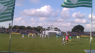 Campo da Liga Desportiva de Maputo, com cerca de mil espectadores.